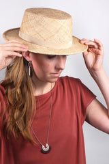 Inspiré des formes aztèques représentant le soleil et la vie, le collier Aurore brillera autour de votre cou quelle que soit la saison.