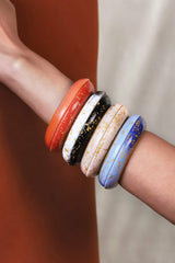 Serti de feuille d’or 24 carats, ce bracelet a été créé en pensant aux bijoux que l'on transmet de génération en génération. Un moment de partage si intime et précieux. Très facile à agencer, il voguera à travers le temps, accompagnant chacune de vos tenues avec désinvolture et éloquence.