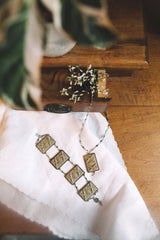 Dans le cas où la feuille d'or ou d'argent ternirait, elle peut être nettoyée en faisant tremper le bijou pendant quelques heures dans de l'alcool à friction à 70%. Si le bijou présente encore des traces d'oxydation, vous pouvez le laisser tremper un peu plus longtemps.