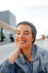 Si vous avez perdu une boucle d'oreille, la créatrice Perrine Marez évaluera s'il est possible d'en fabriquer une nouvelle. Veuillez la contacter au bijouxpepine@gmail.com avec une photo de votre boucle d'oreille. Cependant, les méthodes de production étant artisanales, elle ne peut garantir que la couleur correspondra exactement. Chaque bijou est unique. Il se peut qu'un modèle ou une couleur ne soit plus disponible. Des frais supplémentaires peuvent s'appliquer.