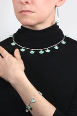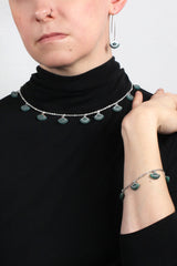 Le modèle St-Jacques est aussi disponible en bracelet et en collier. L'ensemble complet est offert dans les couleurs vert forêt, menthe et noir.