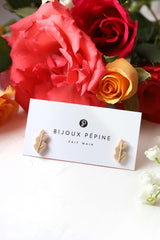 La touche dorée lumineuse met en valeur la finesse des détails et attire subtilement le regard. Une feuille d'or 24 carats vient parfaire votre tenue, ajoutant une touche de précieux et d'authenticité à ces boucles d'oreilles uniques.